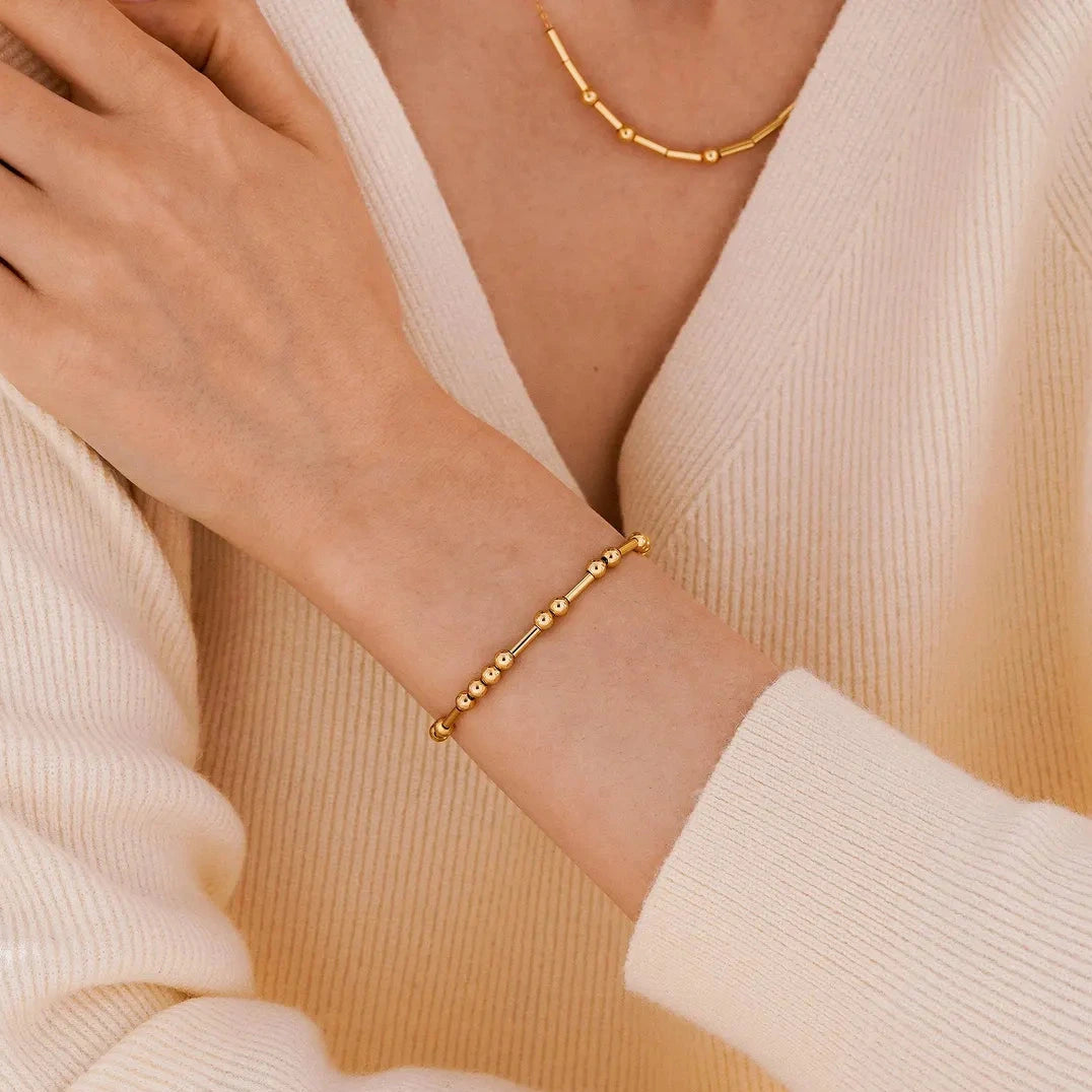 Minimalistyczna forma sprawia, że bransoletka jest idealnym dodatkiem zarówno do codziennych stylizacji, jak i na wyjątkowe okazje.